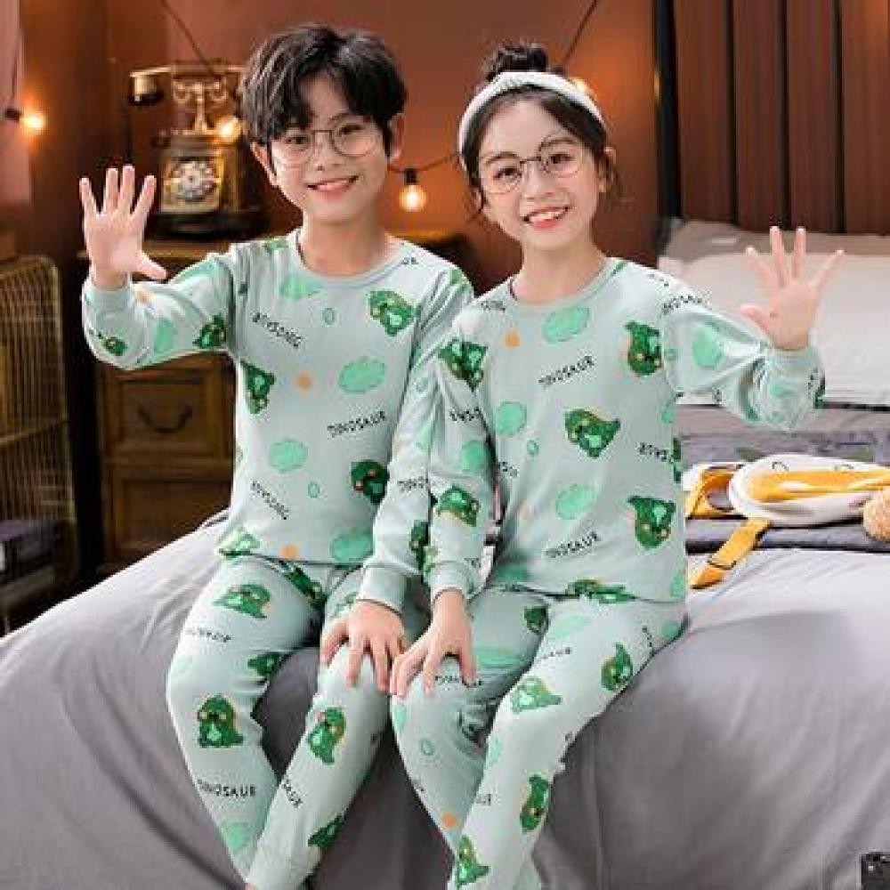 مميزات بيجاما الأطفال كم طويل الديناصور السعيد